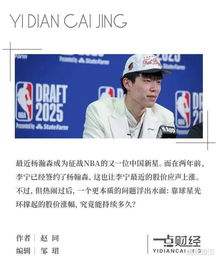 提前在2023年签约杨翰森,确实是李宁的一次成功押注。但历史的教训摆在眼前:球星带来的繁华,终究存在不确定性。运动品牌生命线的稳健性,还是在于自身根基。